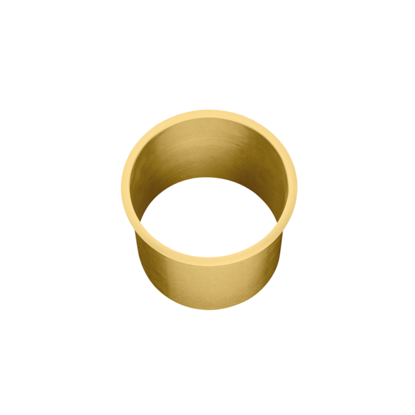 Circular waste chute for washbasin installation from above or below. Stainless steel with PVD coating in brass. 1.2mm thickness. With crimped edge. Including mounting clips and screws.