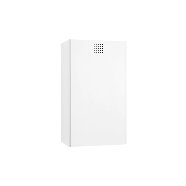 Abfallbehälter für Wandmontage. Edelstahl, Oberfläche weiß pulverbeschichtet in RAL 9016 verkehrsweiß mit Feinstruktur. Front 1,5 mm Materialstärke. Perforierte Gestaltungsfläche mit 4 mm Bohrungen. Integrierte Sackhalterung. Fassungsvermögen ca. 31 Liter. Optional als Standmodell erhältlich. Inkl. Edelstahlschrauben und Dübel.