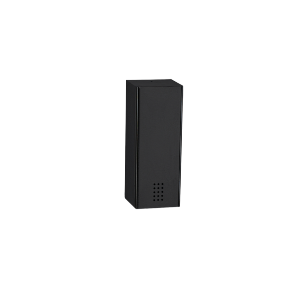 Elektr. Schaumseifenspender mit Annäherungssensor für Wandmontage. Edelstahl, Oberfläche schwarz pulverbeschichtet in RAL 9005 tiefschwarz mit Feinstruktur. Front 1,5 mm Materialstärke. Perforierte Gestaltungsfläche mit 4 mm Bohrungen. Schloss nicht sichtbar. Spender kann mit Batterien (4x Alkaline 1,5V, Typ AA) betrieben werden oder direkt – mittels optional erhältlichem Netzstecker – an das Netz mit 230 V angeschlossen werden. Füllbehälter mit Deckel herausnehmbar zum Reinigen. Fassungsvermögen ca. 0,8 Liter. Pro Hub ca. 0,8 ml. Inkl. Schlüssel, Edelstahlschrauben und Dübel.
