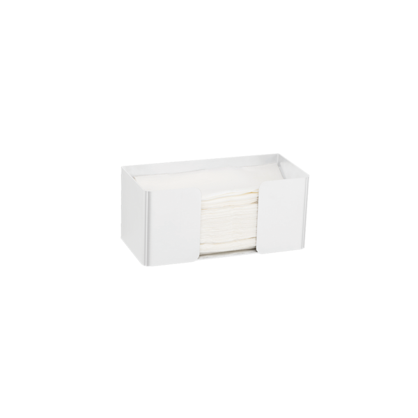 Papierhandtuchspender oben offen für Wandmontage. Edelstahl, Oberfläche weiß pulverbeschichtet in RAL 9016 verkehrsweiß mit Feinstruktur. Front 1,5 mm Materialstärke. Fassungsvermögen ca. 250 Blatt bei Papierhandtüchern mit ZZ/V-Faltung. Geeignet für Papierhandtücher mit einer gefalteten Länge von ca. 220-250 mm und einer gefalteten Breite von ca. 95-120 mm. Inkl. Edelstahlschrauben und Dübel.
